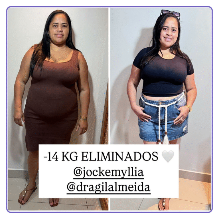 Eu mesma já eliminei 23 kg e hoje ajudo outras mulheres a conquistarem o mesmo: roupas mais folgadas, autoestima de volta e um corpo que cura, de dentro para fora. Porque contra resultados, não se discute.